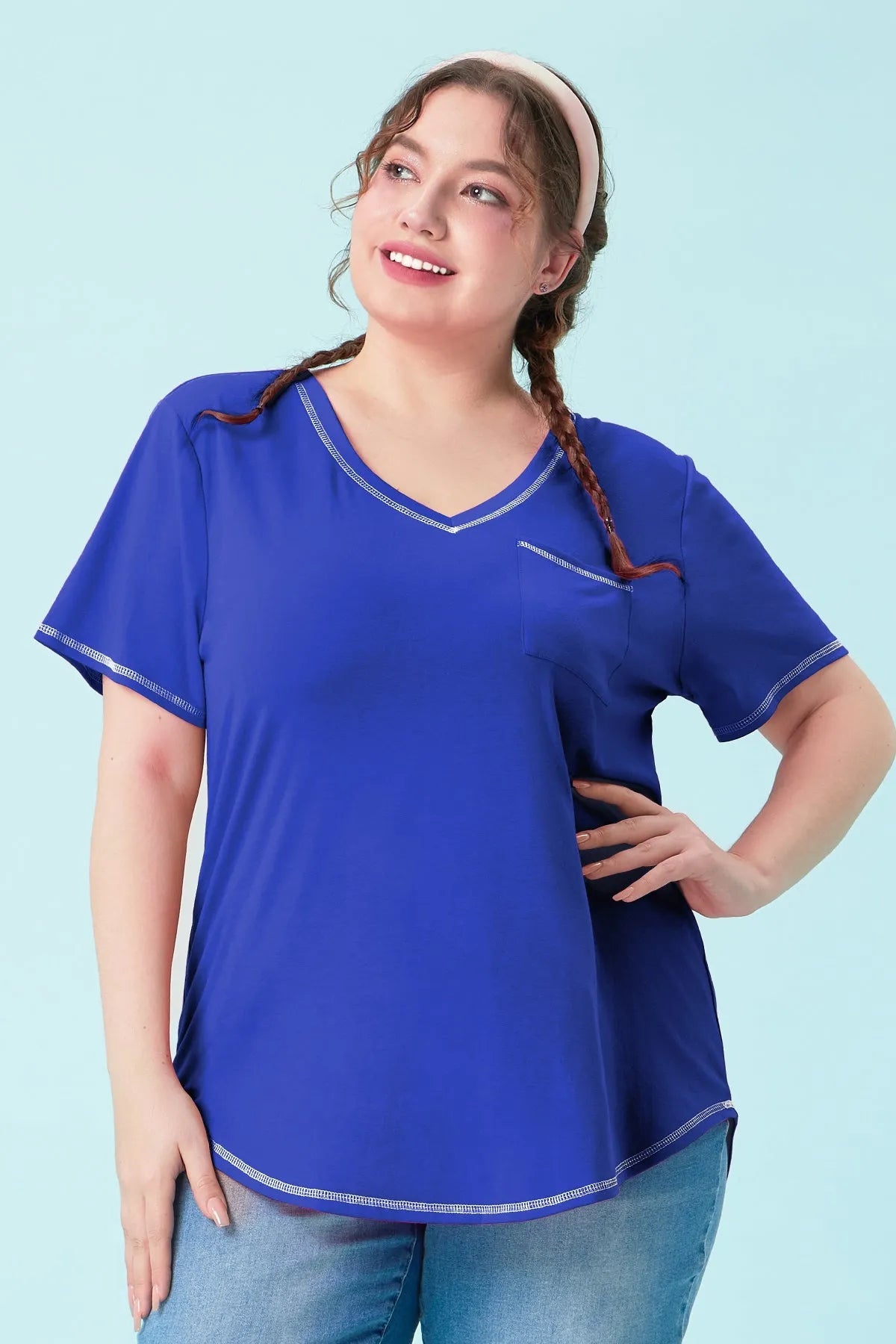 Solid V-neck Short Sleeve Tunic T-Shirt