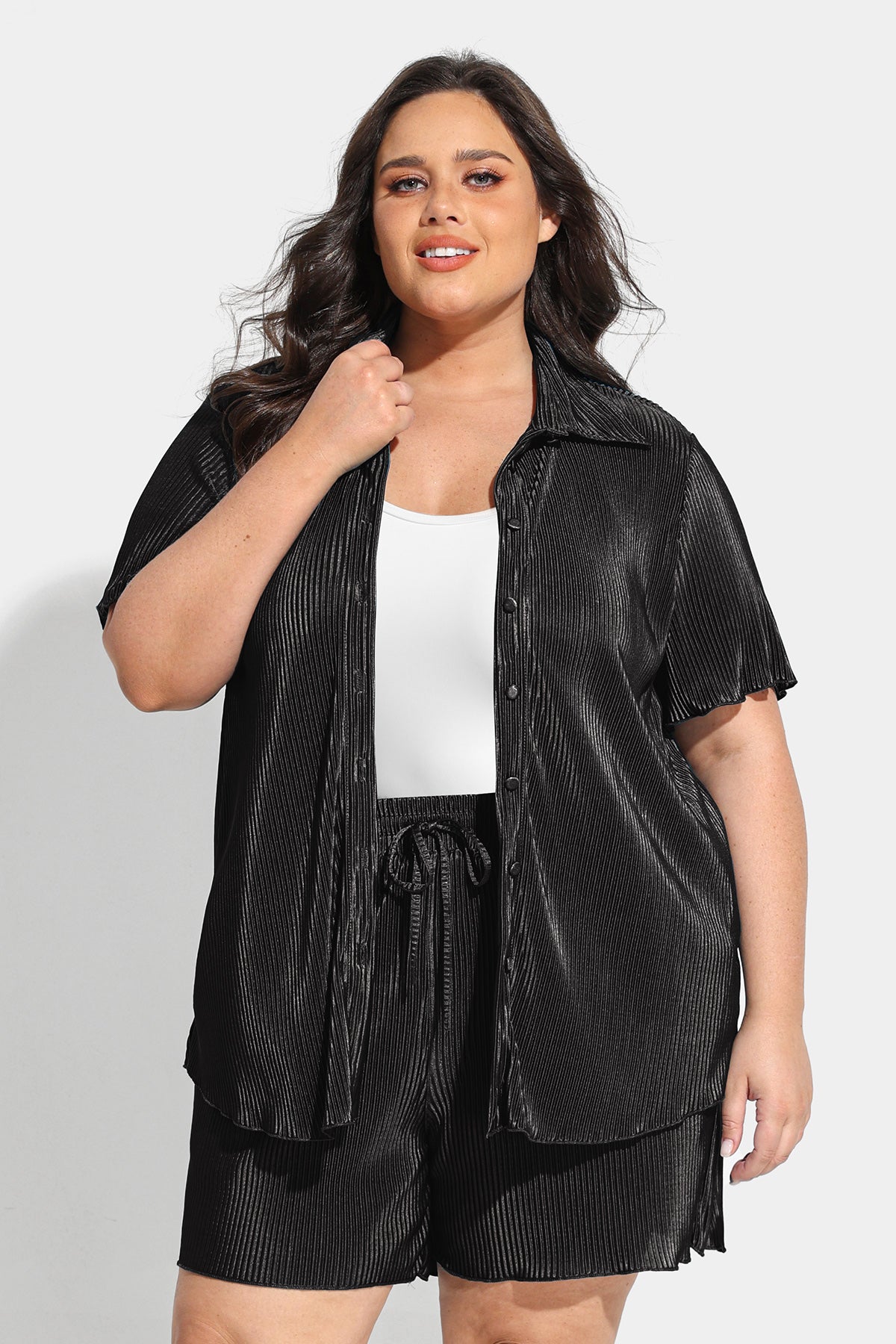 Plain Decor Button Ruffle Hem Pleated Mini Dress