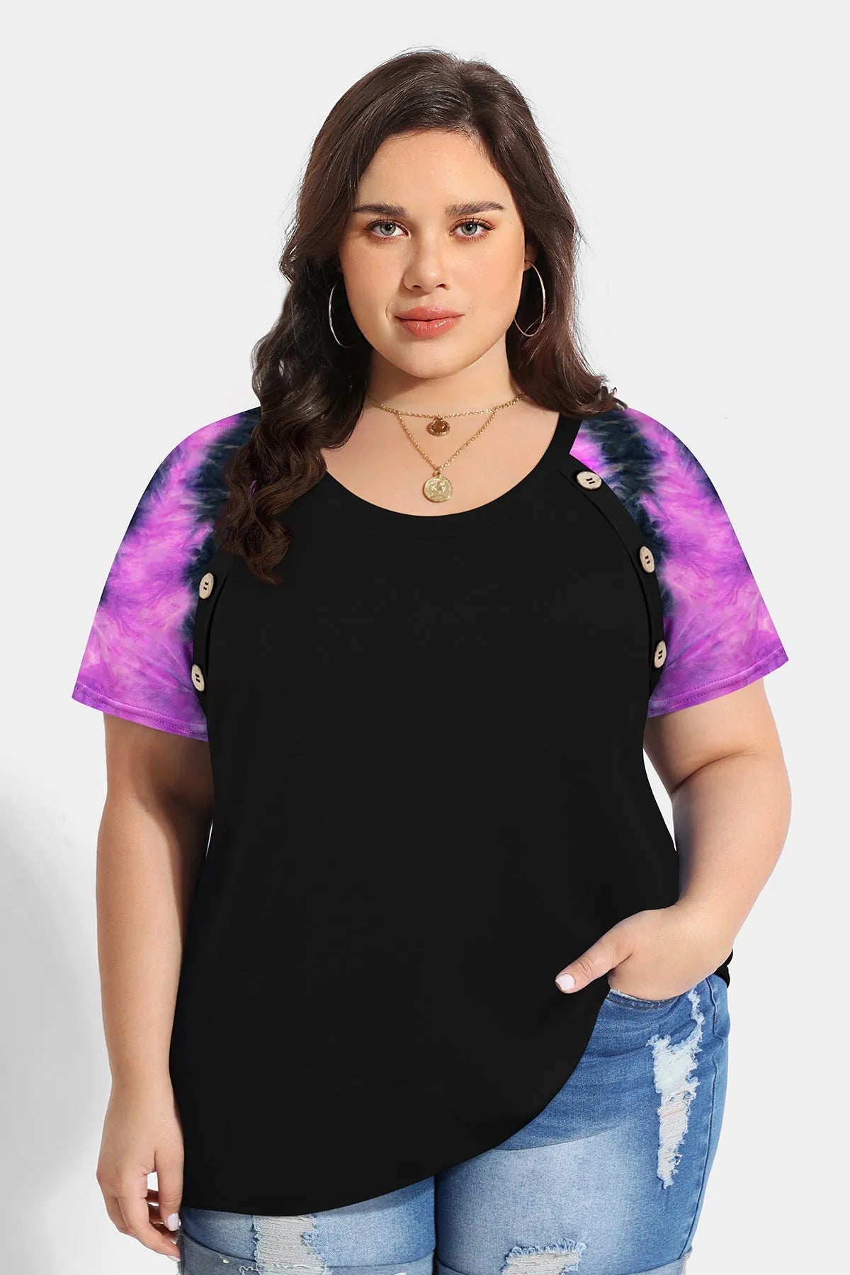 Raglan Tie Dye Button Detail Crew Neck T-Shirt