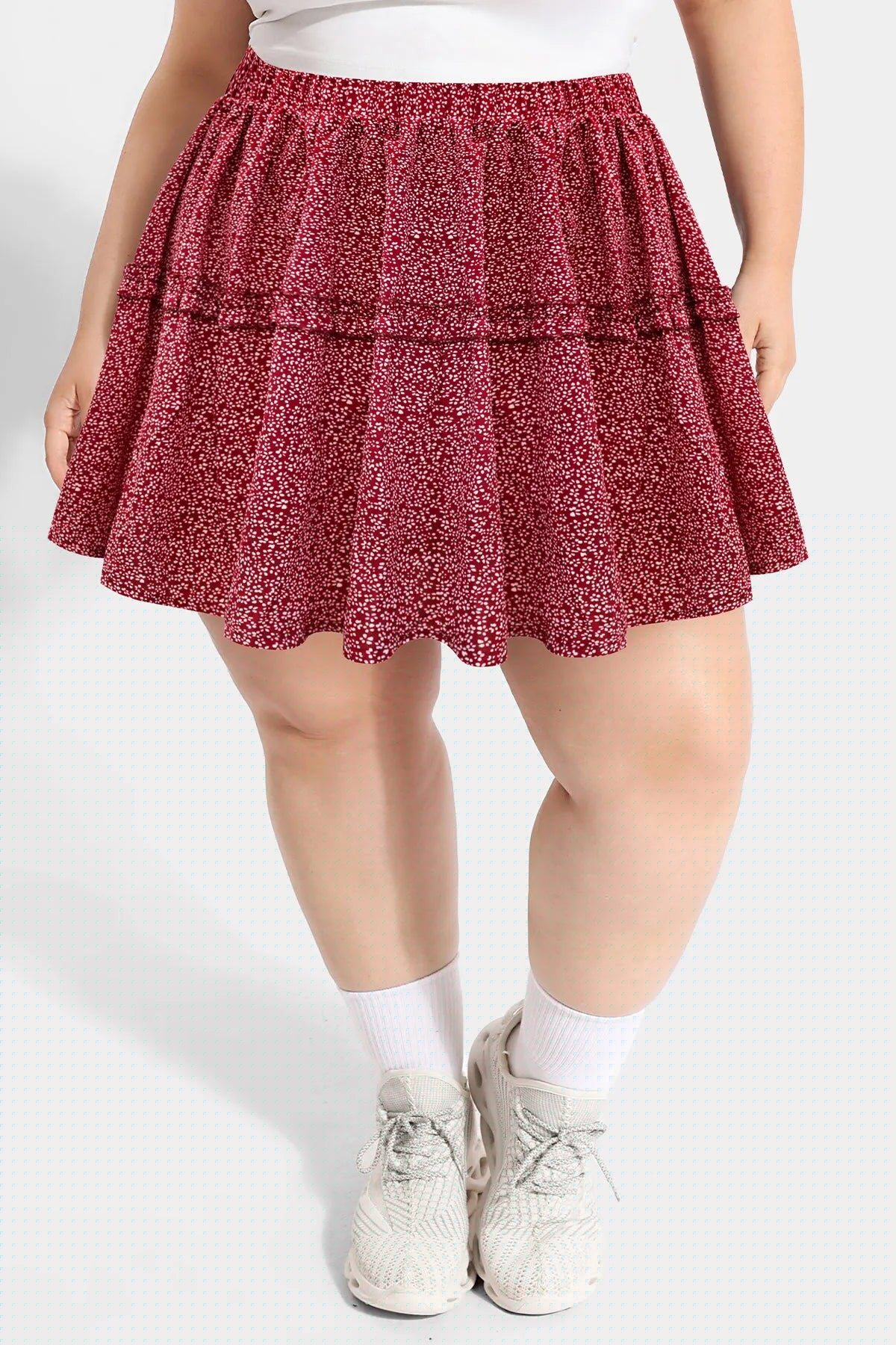 Allover Floral Elastic Waist Pleated Mini Skirt