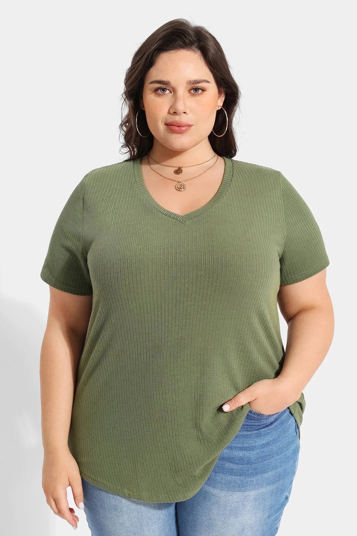 Essential Texture V Neck Basic Short Sleeve T-Shirt