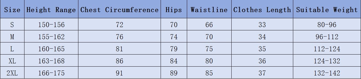 Note: Please choose the size according to the size chart. If you are obese or overweight style, it is recommended to choose 1-2 size larger.