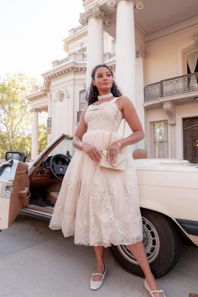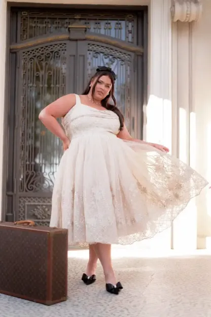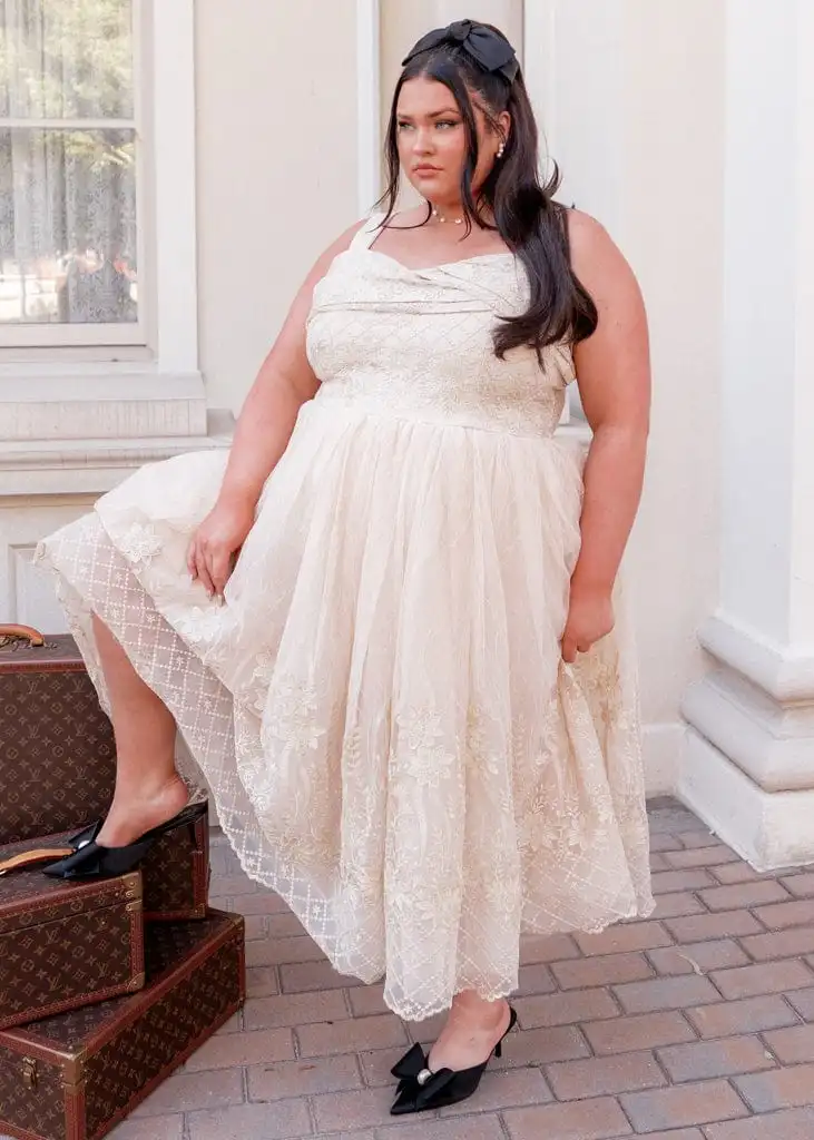 Be the star of the show in our Brigette Dress – a vision of royal elegance that will transport you to a world of festive wonder. As you slip into this golden beauty, you'll find yourself immersed in a dreamy holiday fantasy, where every moment shimmers with magic. Pair it with pearls and heels to complete a look that's timelessly chic and beautifully you.