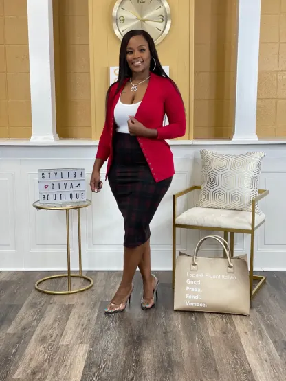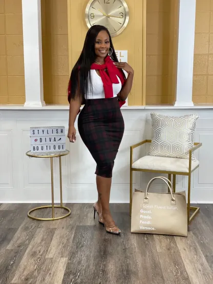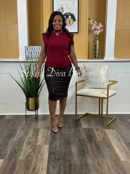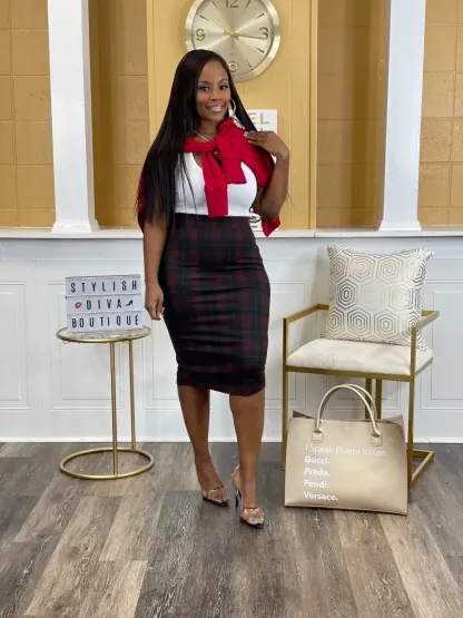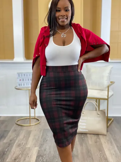 Business Meeting Skirt ONLY up to 3XL (Burgundy Plaid)