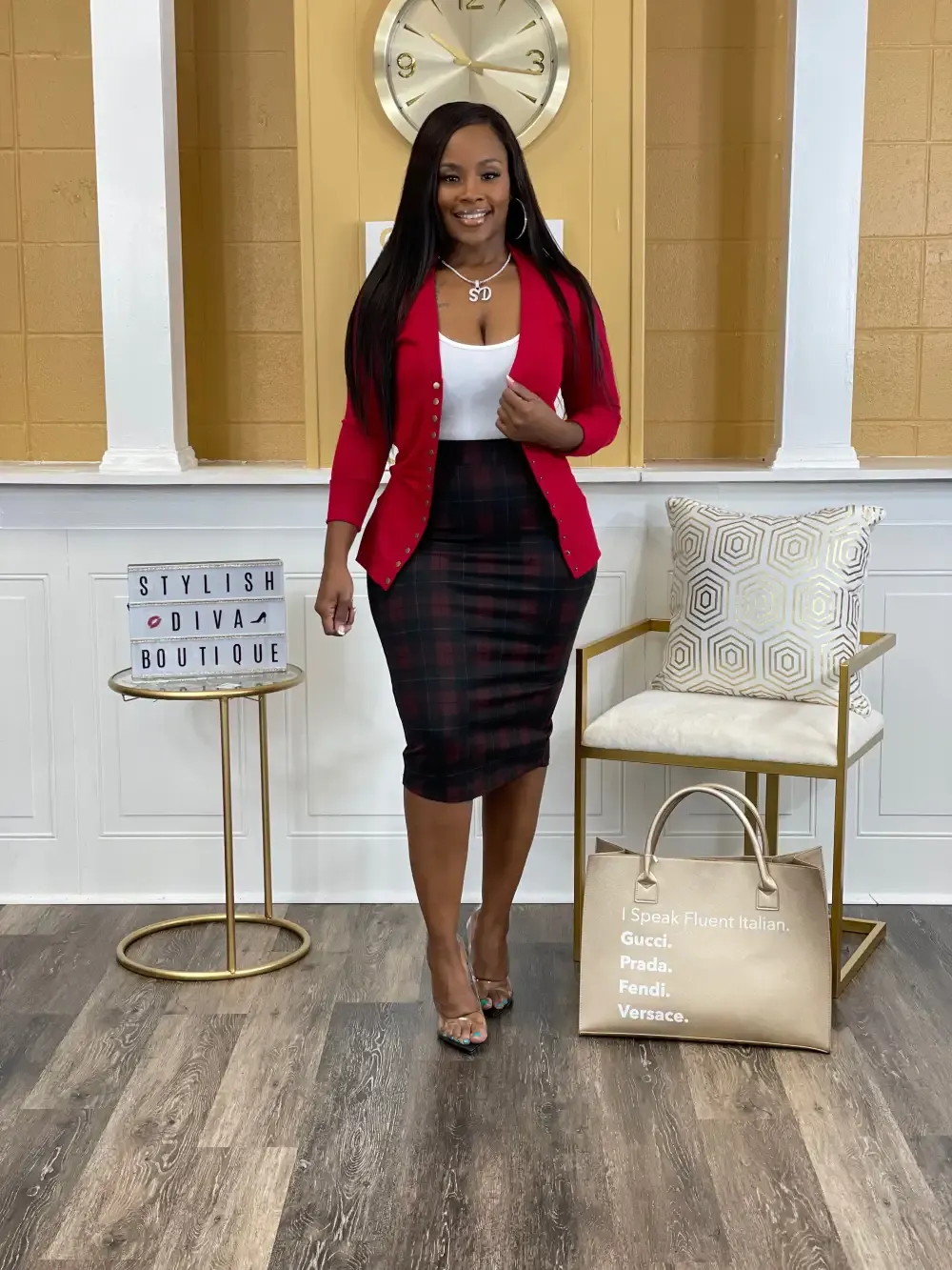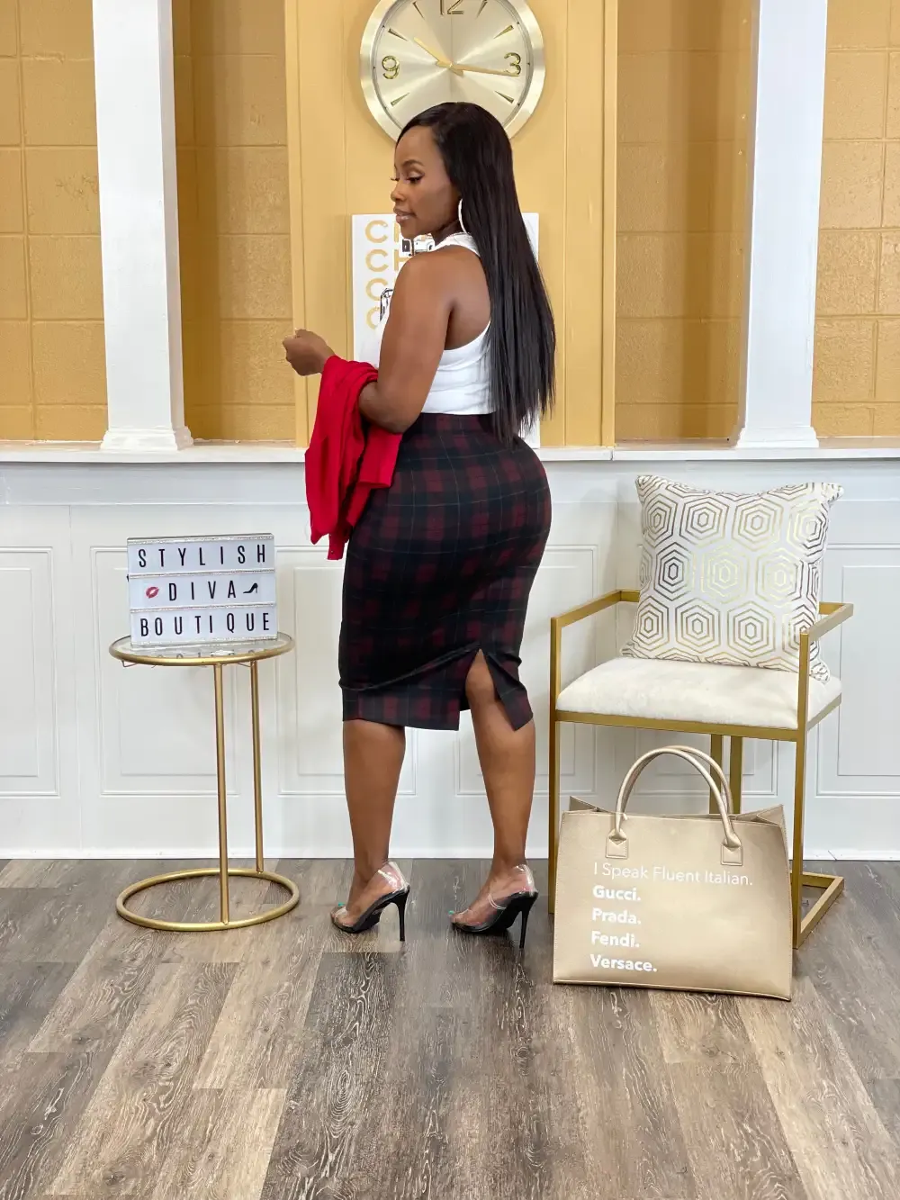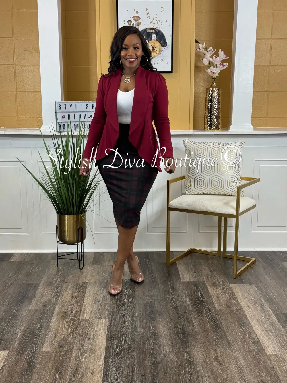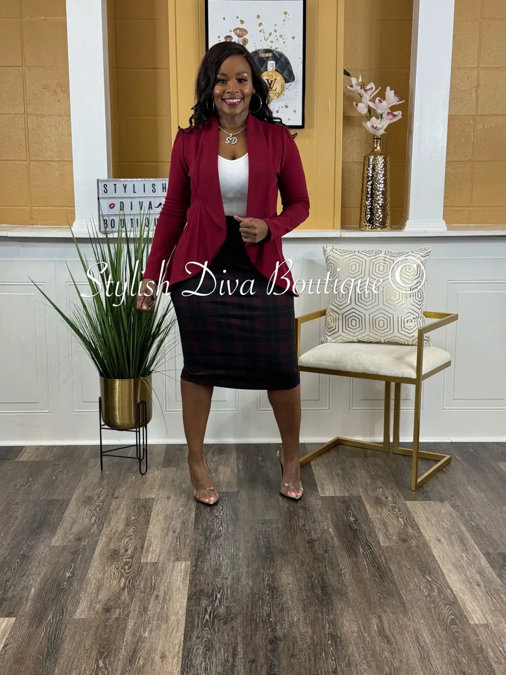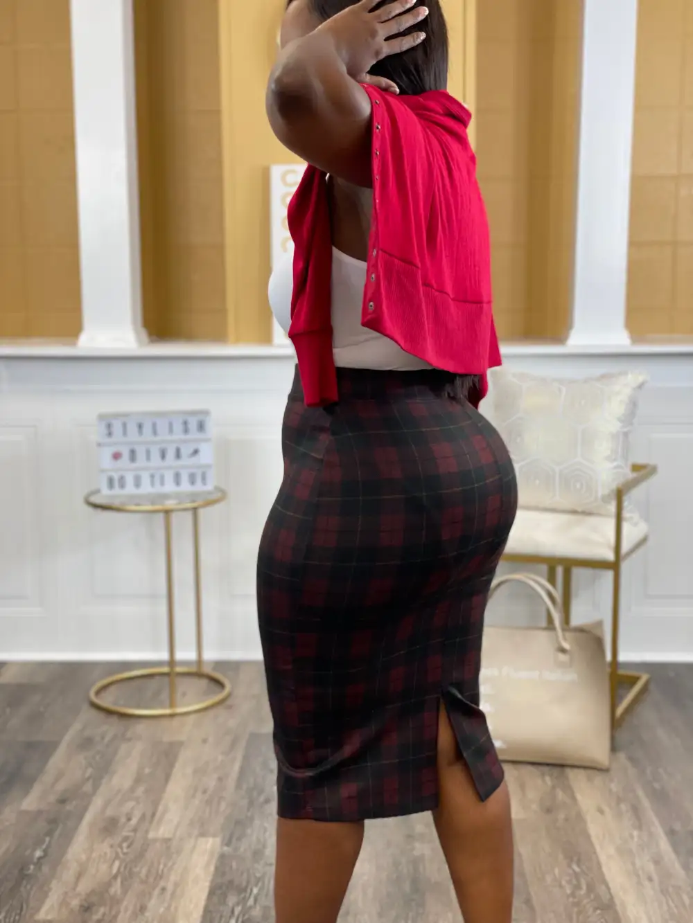 Business Meeting? Casual Event? The Business Meeting Skirt is a must-have for your casual or business casual days. Great to wear in any season, which makes it the perfect set. Business Casual At Its Best. We’re Handling Business & Looking A Like Diva At The Same Time in this set.