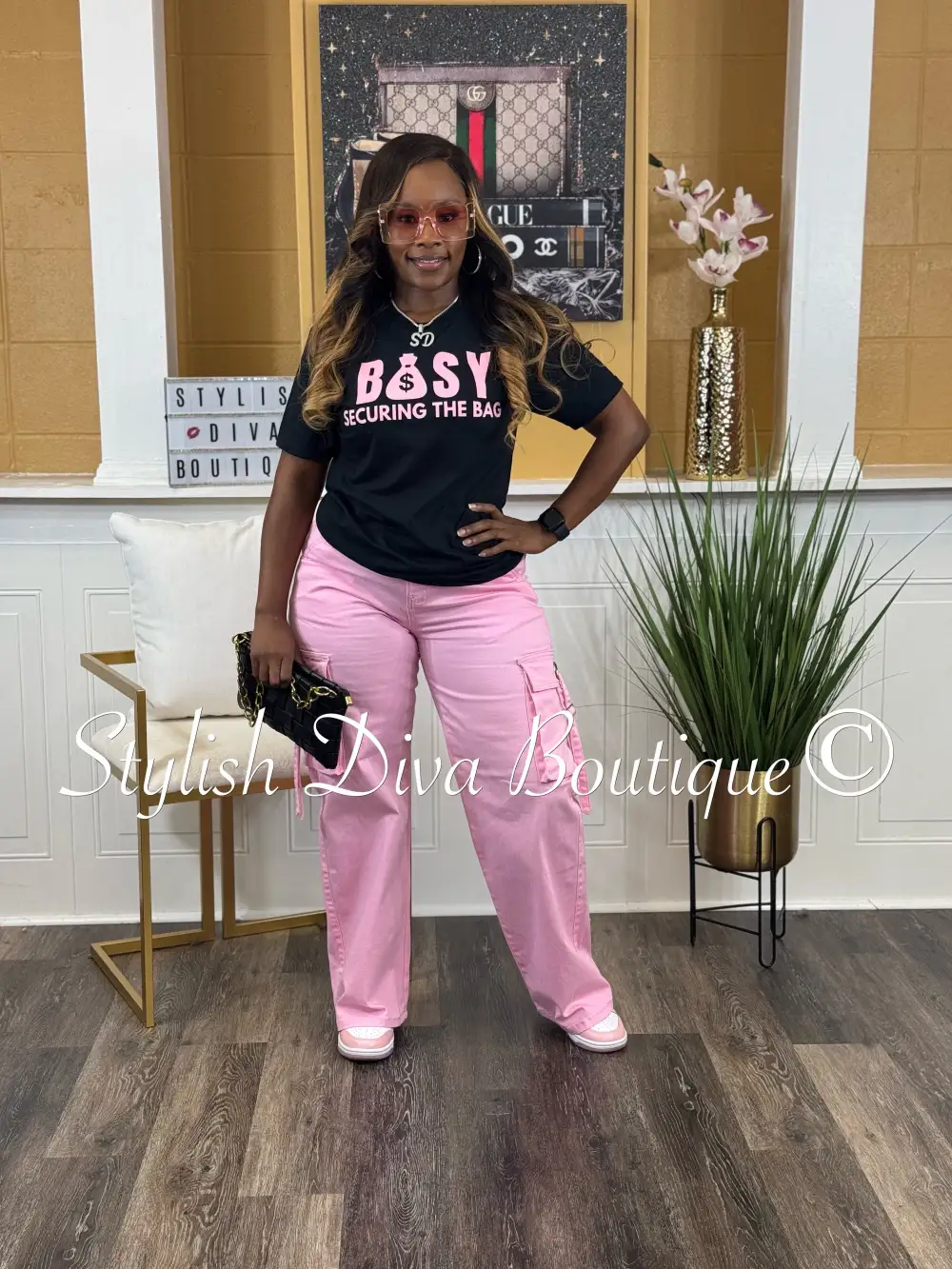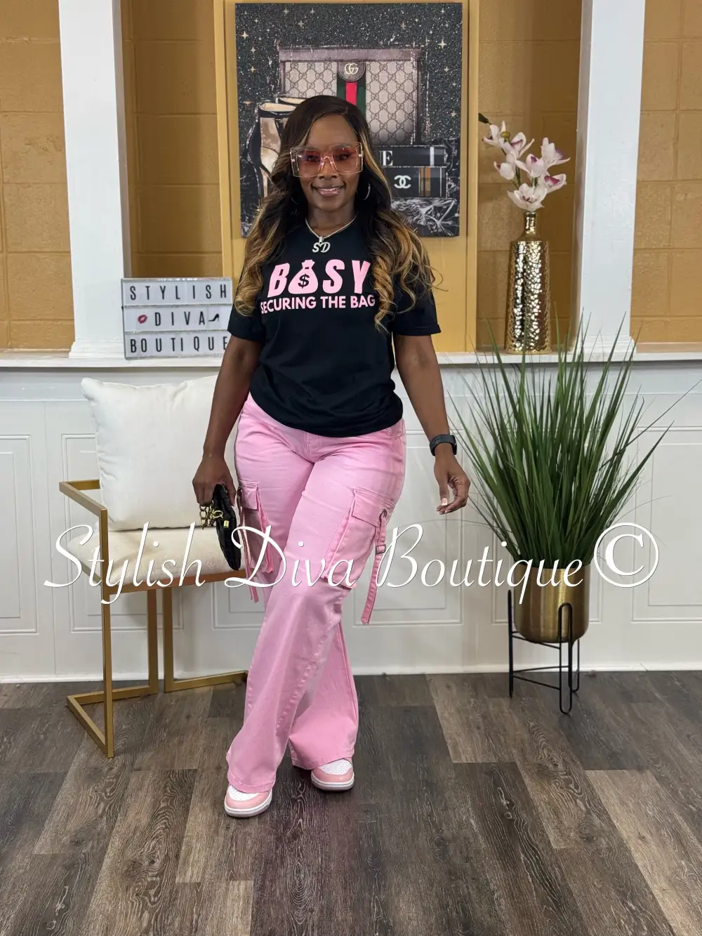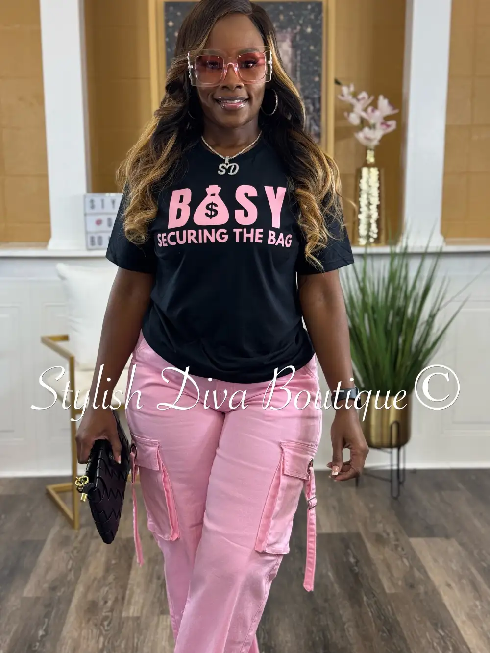 BUSY Securing The Bag T-Shirt (Pink Print)
