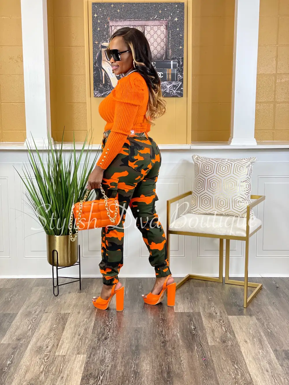HIGH WAIST COLOR CAMO JOGGER PANTS