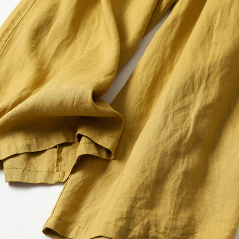 Cotton linen loose semi-elastic cropped pants