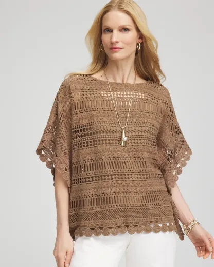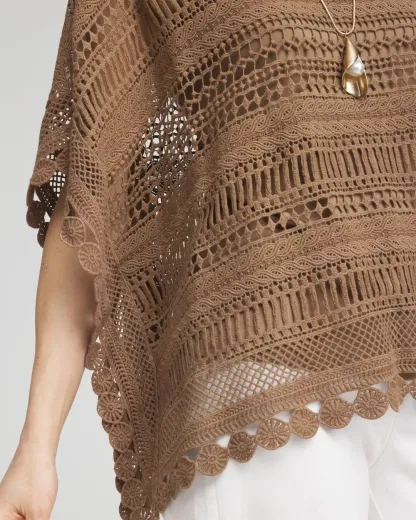 Wear this new luxurious Crochet Lace Poncho layer for an elegant look, featuring an intricately crochet border. This topper has a boat neckline and elbow-length sleeves to give the silhouette more flow and femininity.