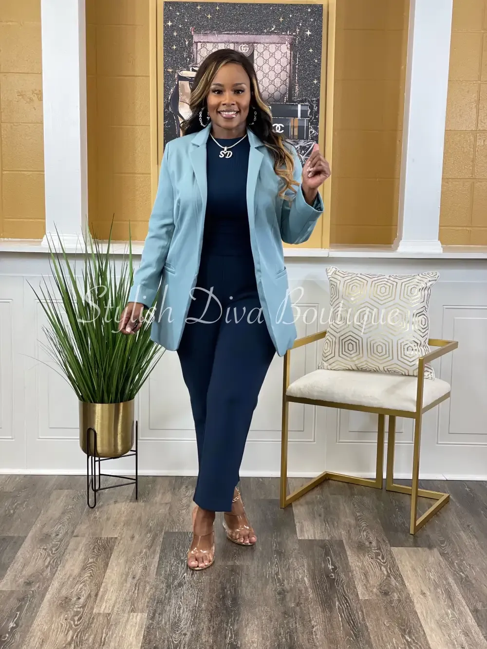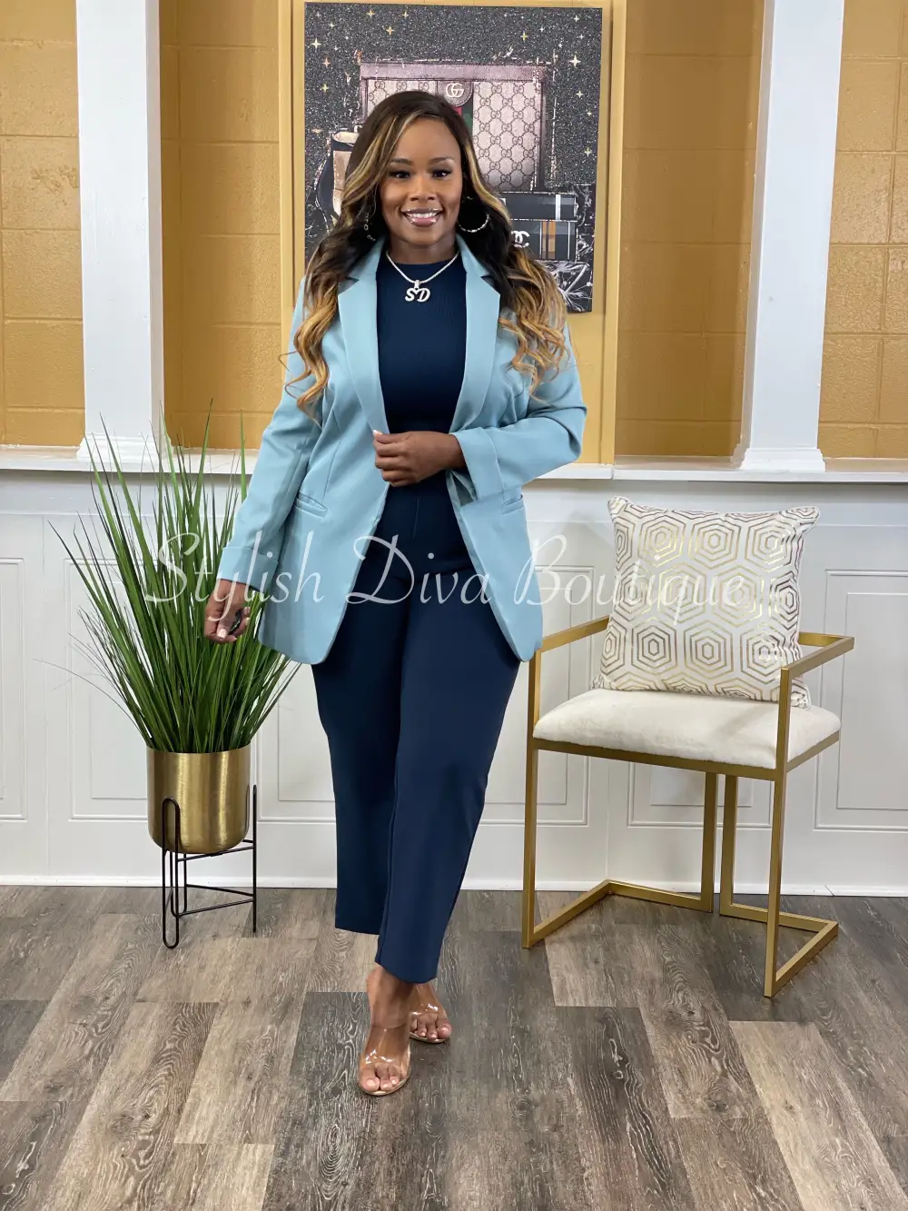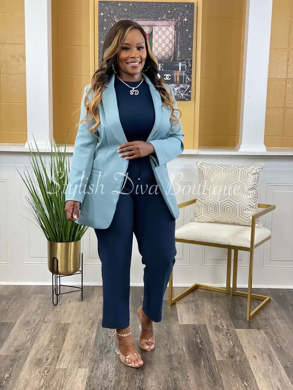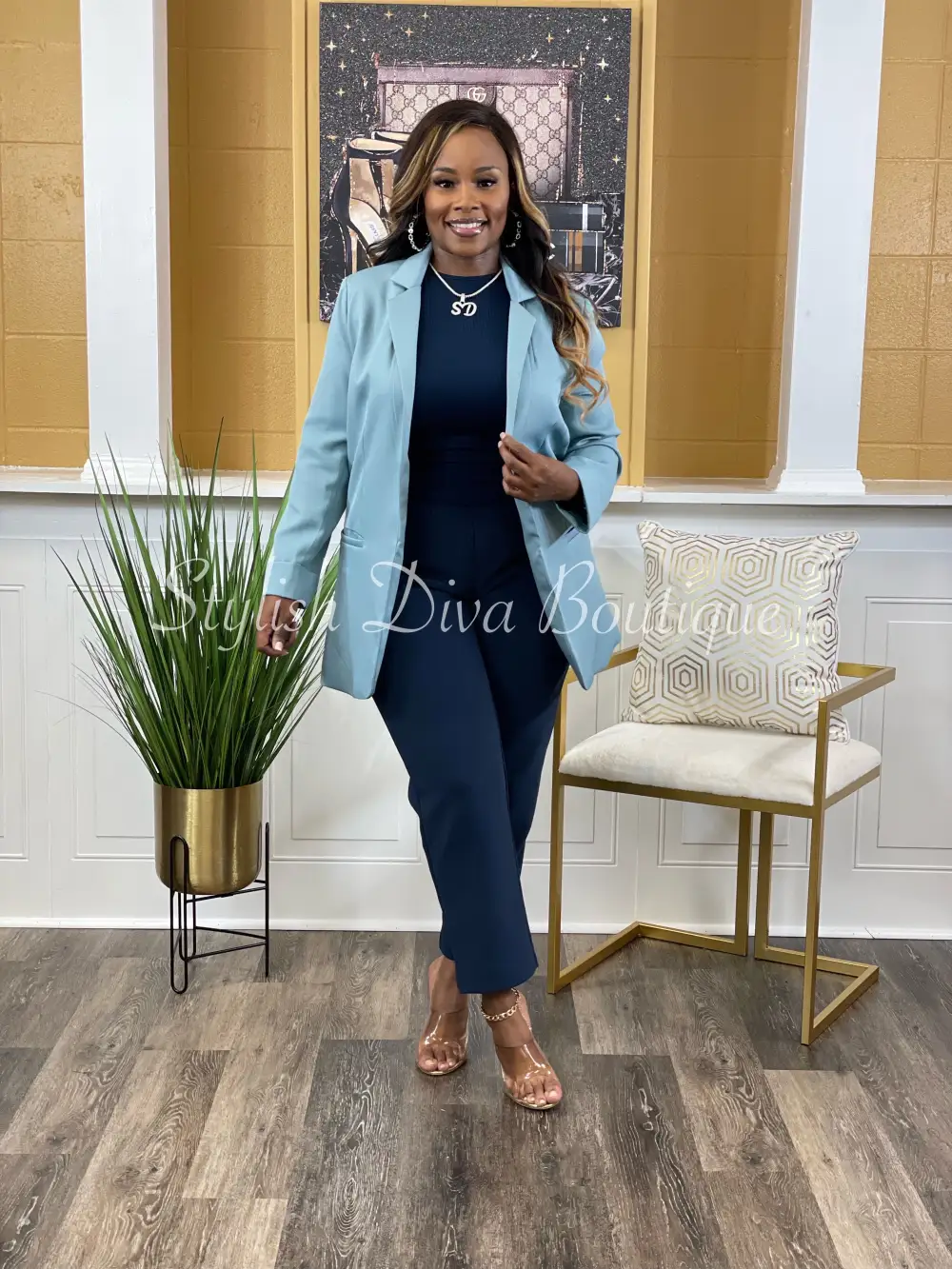 Established Excellence Cuffed Sleeve Blazer (Blue Grey)
