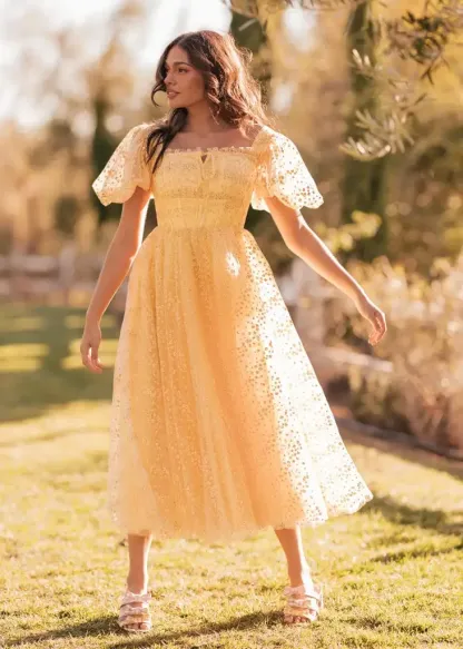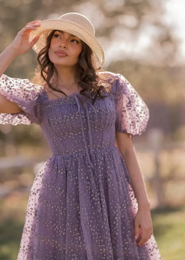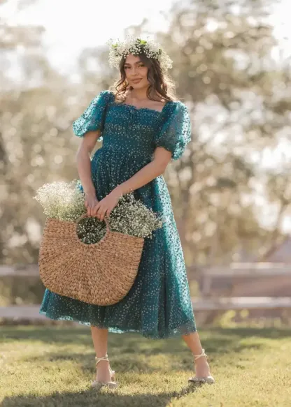 The Everbloom Dress is a magical blend of elegance and whimsy, designed to make every moment unforgettable. Featuring shimmering floral embellishments and a dreamy puff-sleeve silhouette, it’s the perfect choice for any special occasion. Available in three enchanting colors―Teal Gardenia, Lavender Dream, and Buttercup Bliss―this dress is your invitation to step into a fairytale. Its flattering fit and sparkling details will leave you glowing all night long.