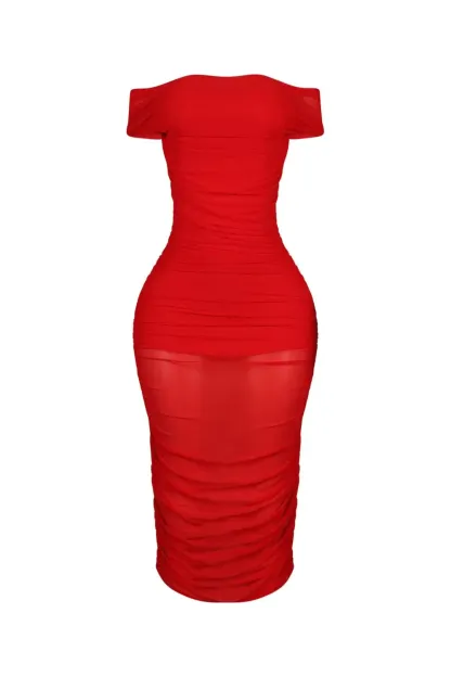 Mesh ruched midi dress featuring a 2 way look