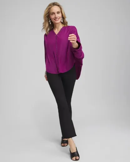 - Classic flare fit; front and back pockets, front zipper & button, So Slimming® 180 panel.