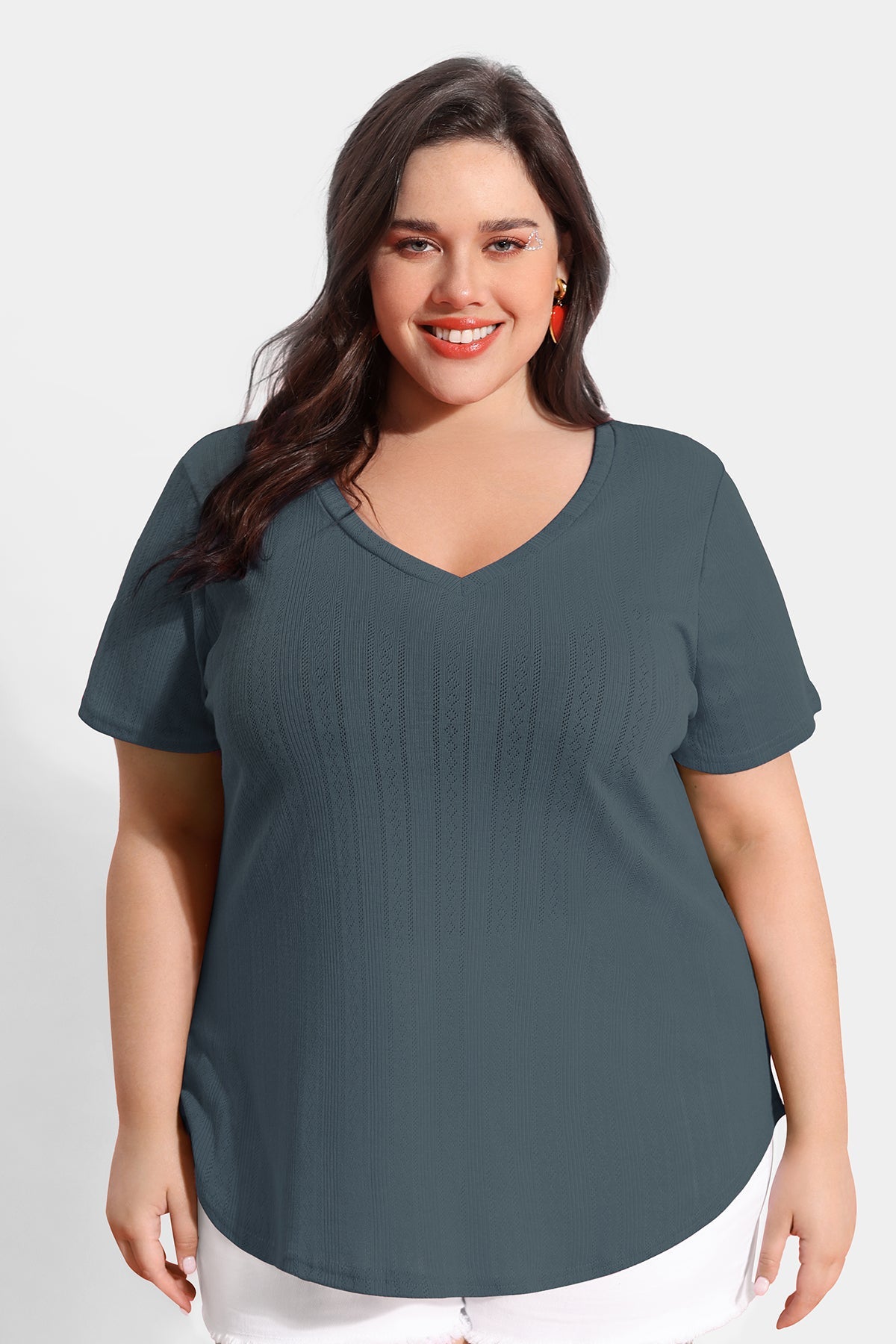 Essential Texture V Neck Basic Short Sleeve T-Shirt