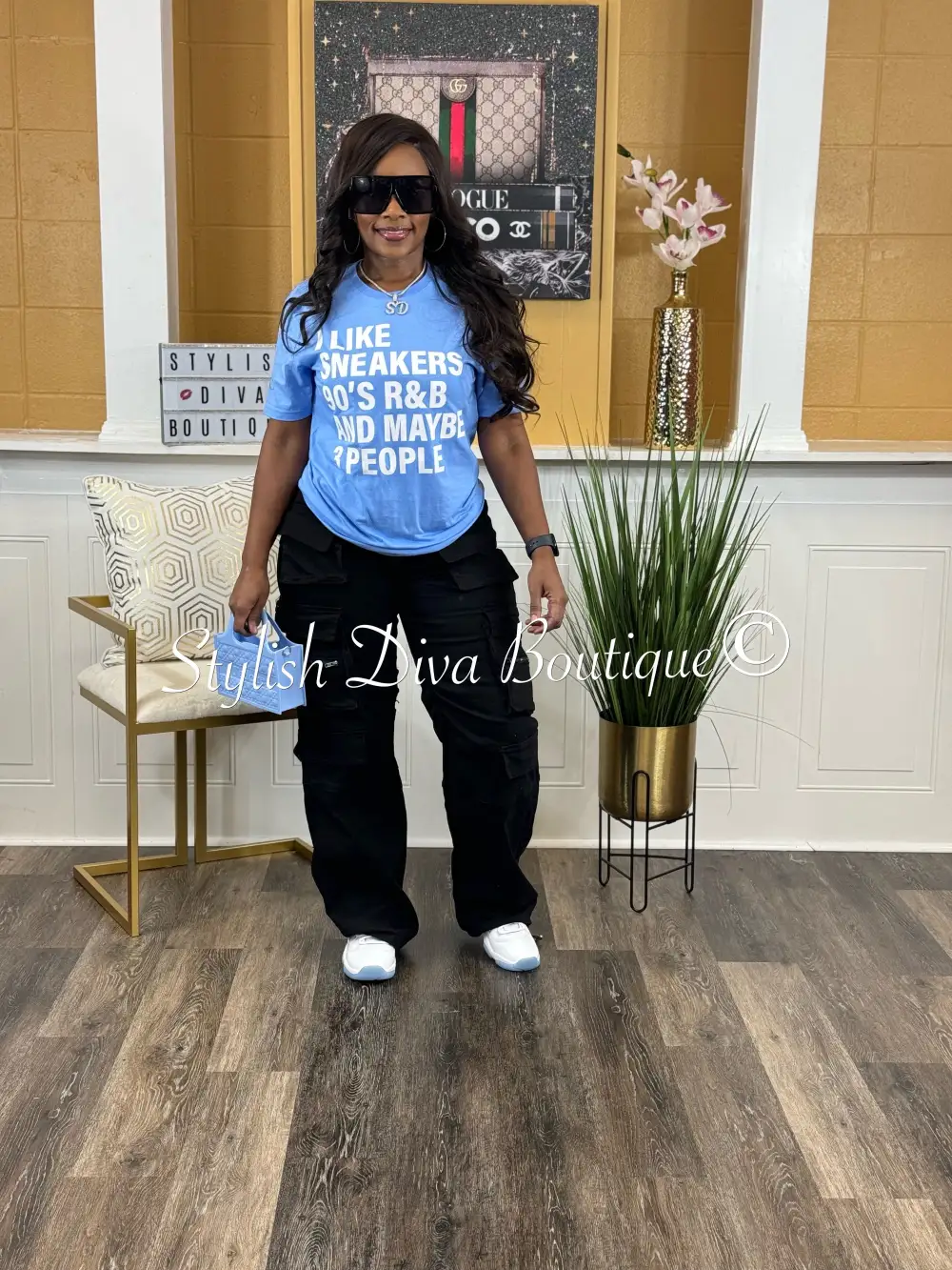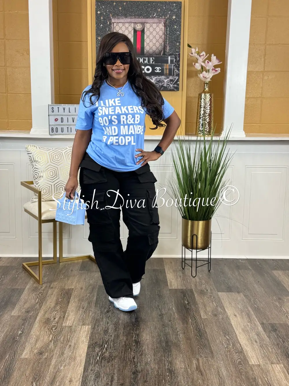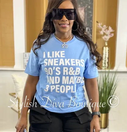 I Love Sneakers & 3 People T-Shirt (Columbia Blue Shirt/White Print)