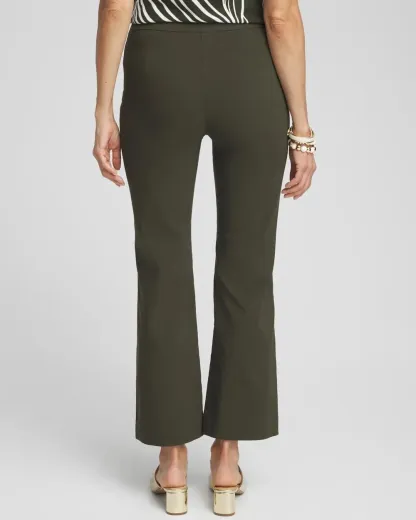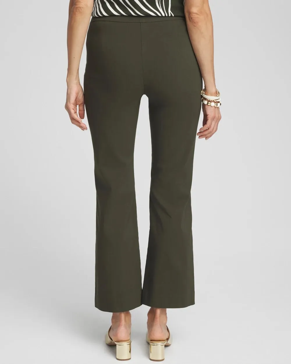 - Classic fit; slim stretch, pull-on, faux back pockets, crop length, flare leg, So Slimming® 180.