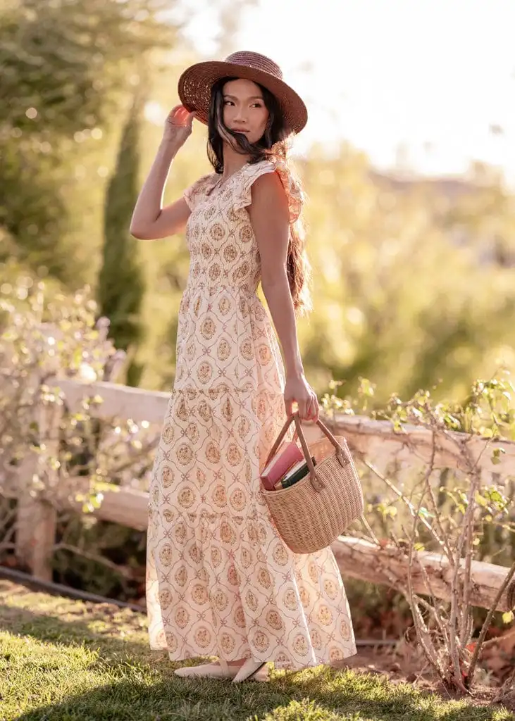 The Katie Dress is a graceful blend of vintage charm and modern elegance. Featuring a delicate floral cameo print with soft pastel hues, this dress is designed with a smocked bodice, puff sleeves, and a flowing tiered skirt for a dreamy silhouette. Effortlessly romantic, it’s perfect for afternoon picnics, special gatherings, or simply twirling through the day. Timeless and feminine, the Katie Dress is a true wardrobe treasure.