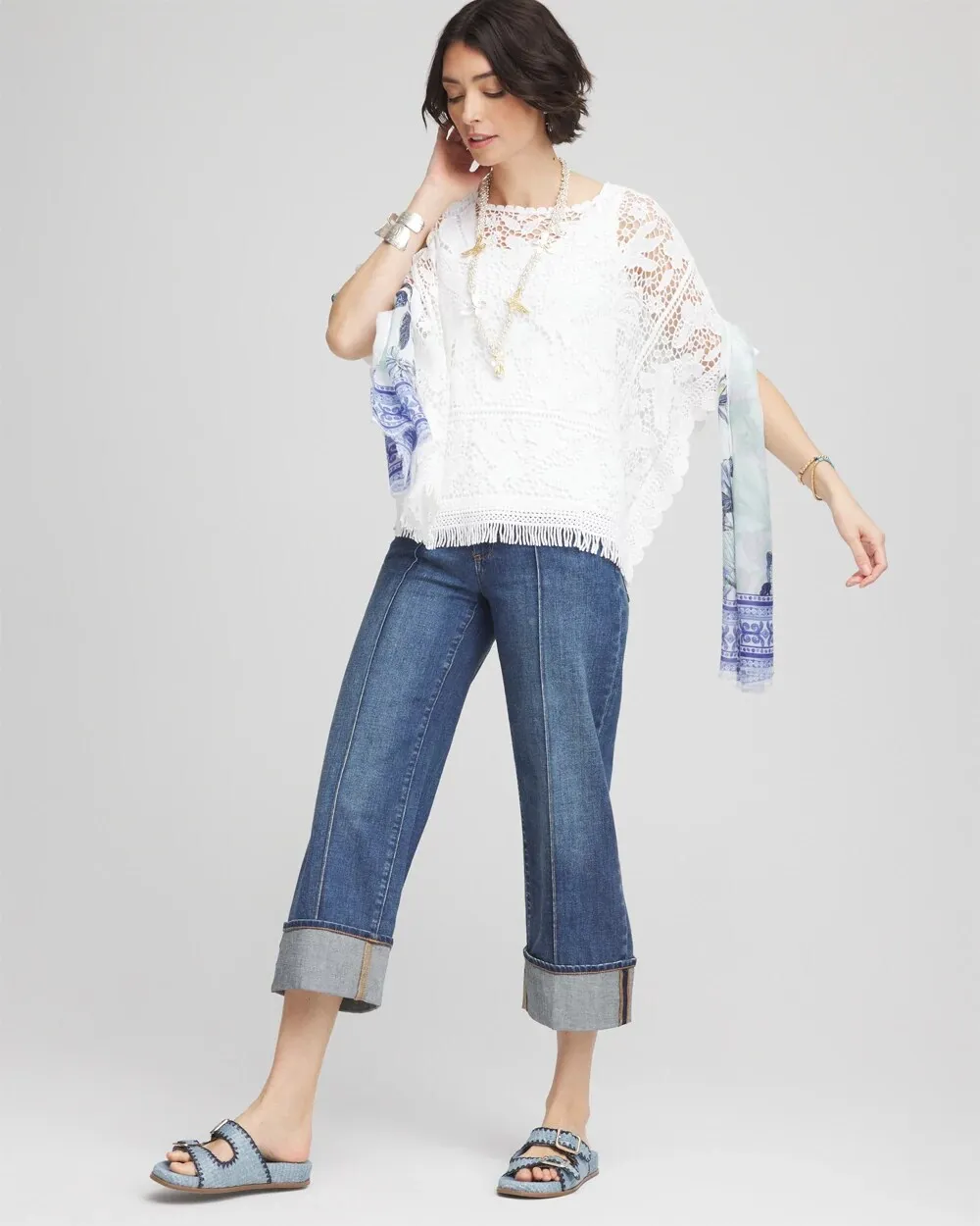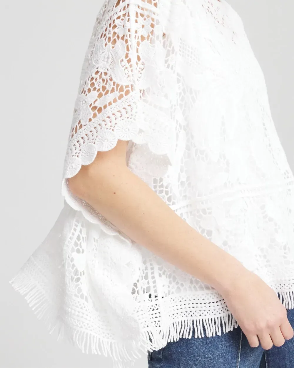 Our Lace Crochet Poncho has easy-breezy style. This design features a delicate lace crochet construction, plus leaf hem trim that adds movement and flair.