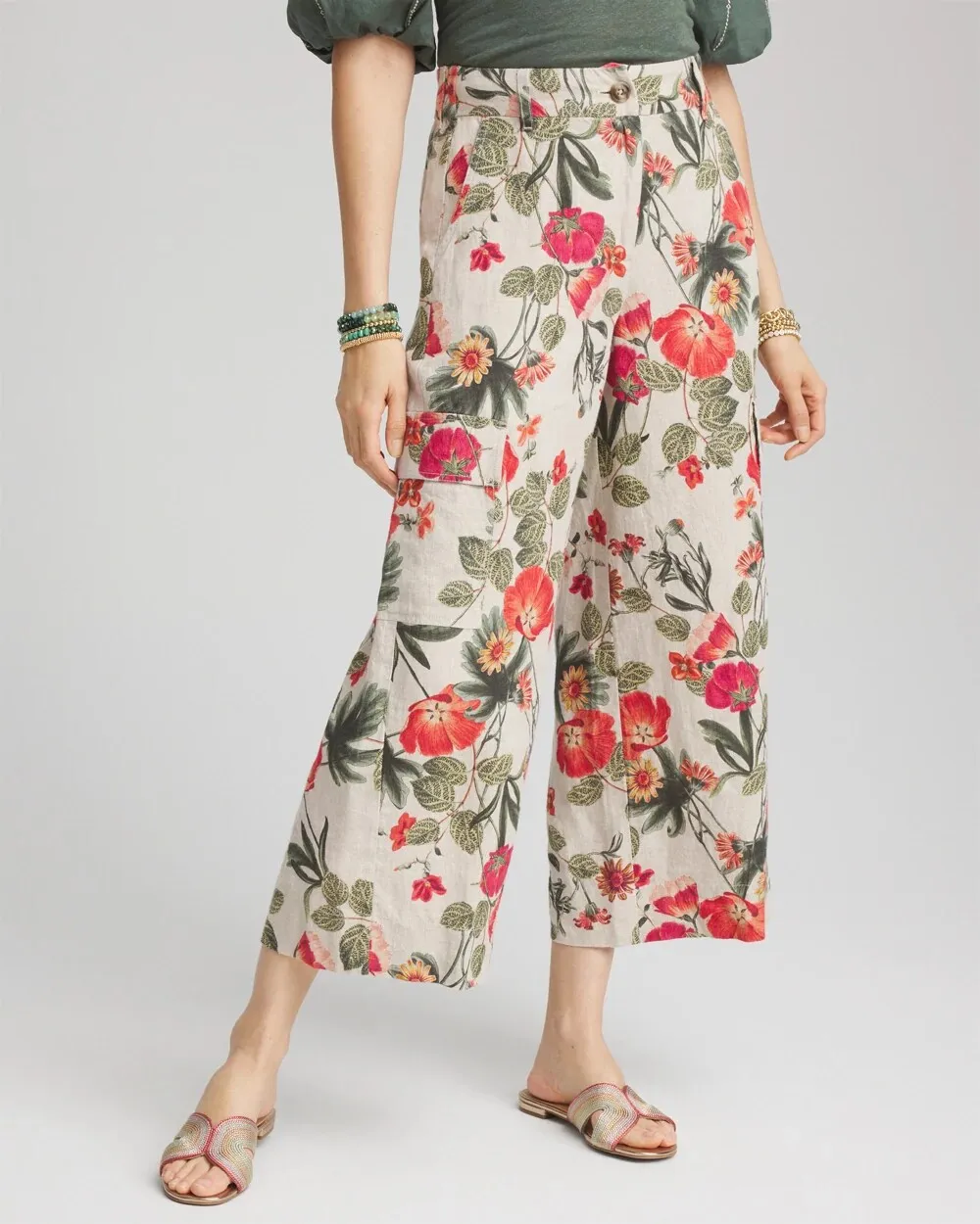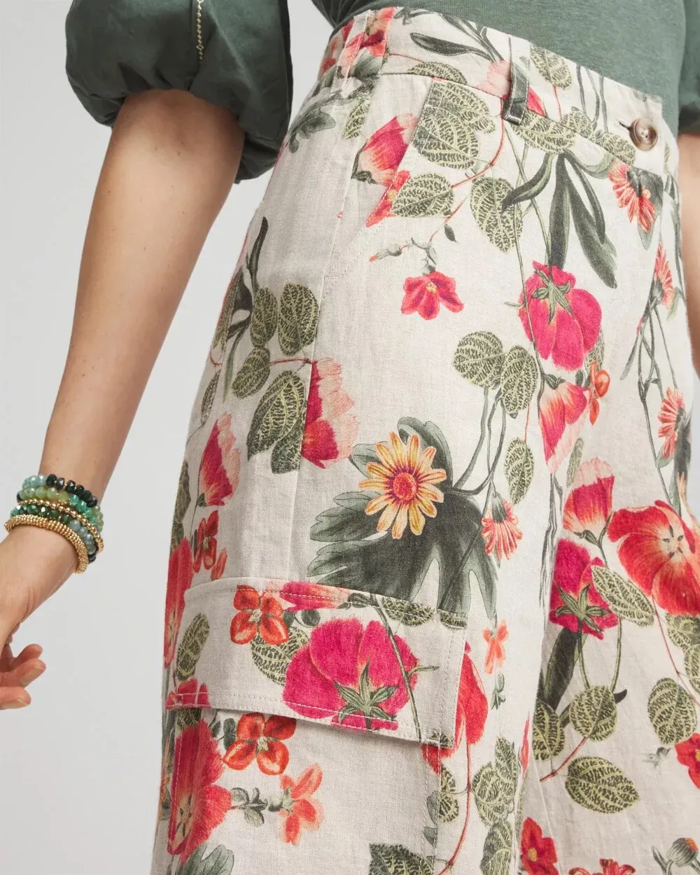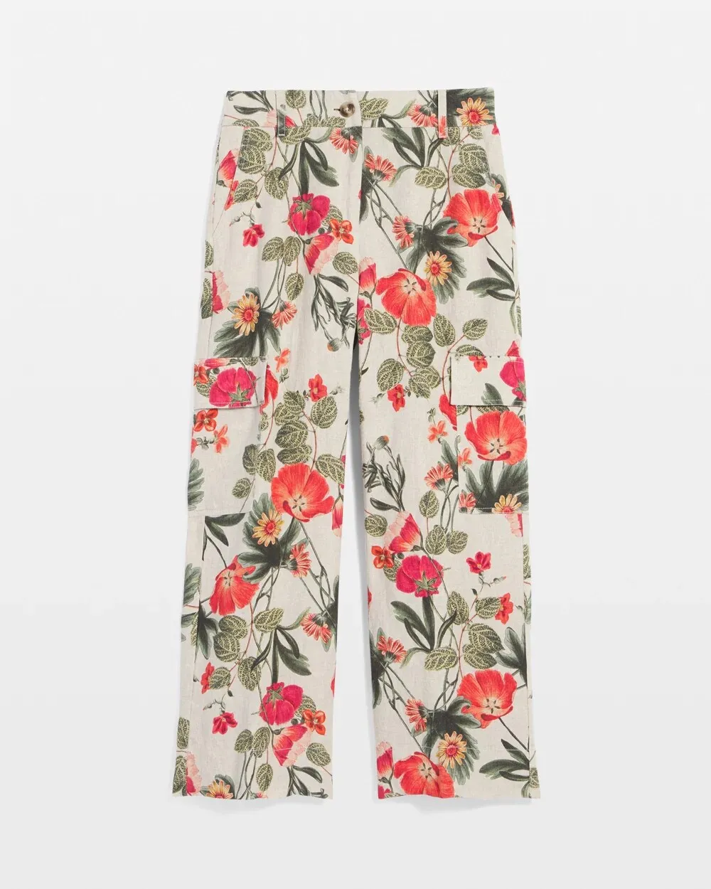 Linen Cargo Wide-Leg Pants