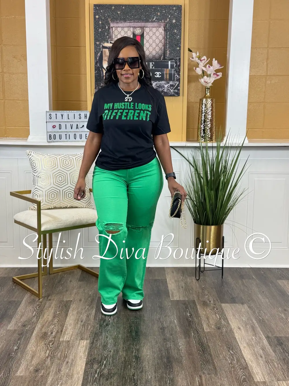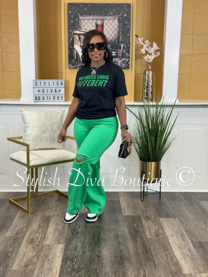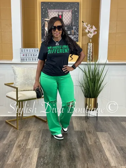 London Straight Leg Distressed Jeans (Green)