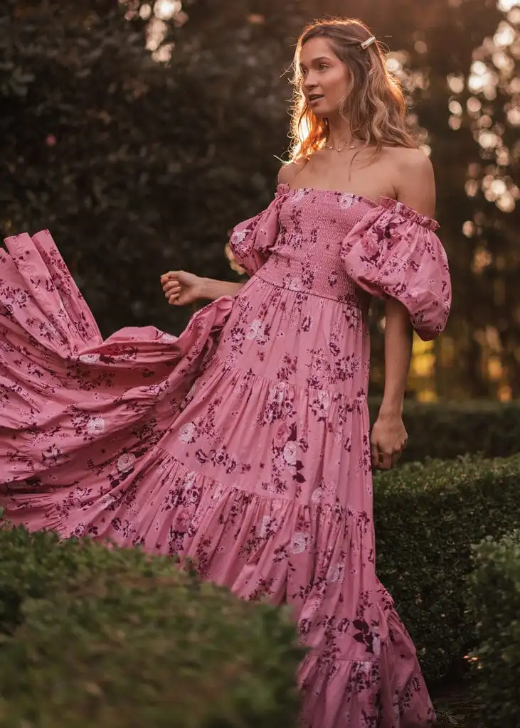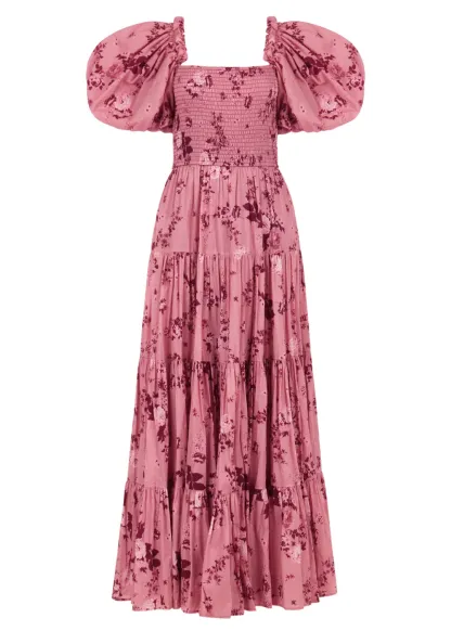 The Luna Dress is your ultimate companion for dreamy outings and cherished moments. Featuring a smocked bodice and voluminous puff sleeves, its enchanting pink floral print radiates elegance and charm. Whether you're strolling through a farmers market, enjoying a picnic, or catching up with friends over brunch, this dress effortlessly combines comfort and style. Its tiered skirt ensures a graceful twirl, making every step picture-perfect.