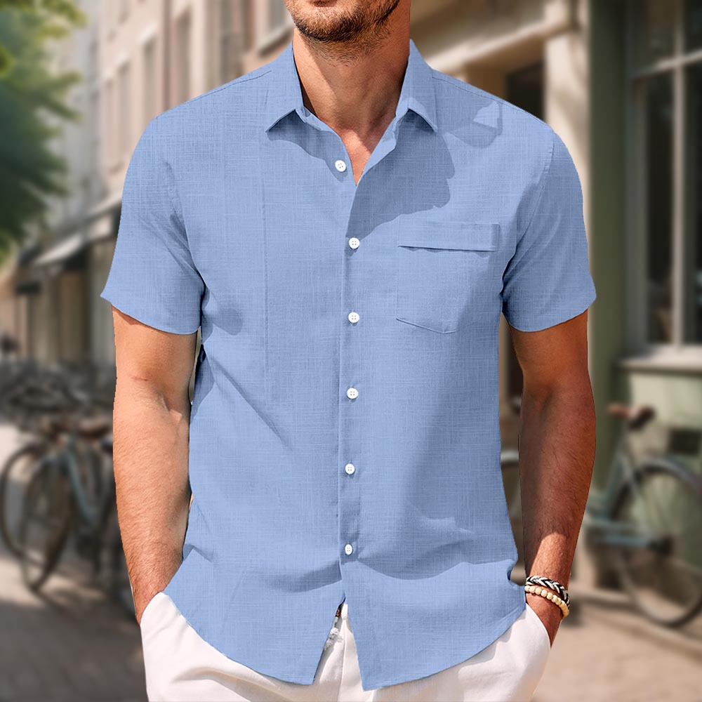 Step into the soothing embrace of this handsome shirt, where simplicity and comfort reign supreme while the natural fibers offer a softness that feels like a second skin, ensuring a pleasant wearing experience throughout the day.