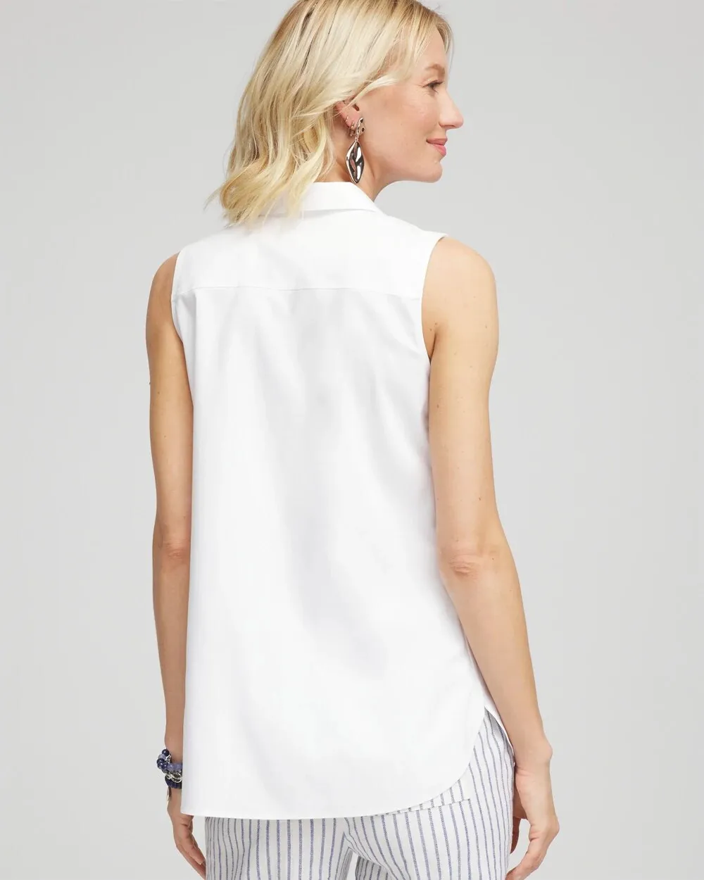 We know our NEW Sleeveless No Iron™ stretch sateen shirts will be tough to keep in stock. This ready-to-wear right-out-of-the-dryer (without the hassle of ironing) top moves with you effortlessly for all-day comfort. It's a perfect fit every time in any season, whether on its own or as a base layer. Designed with a flattering shirttail hem, this button front pairs perfectly with jeans or pants.