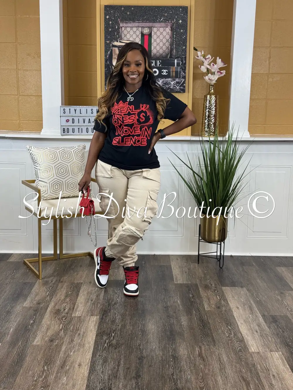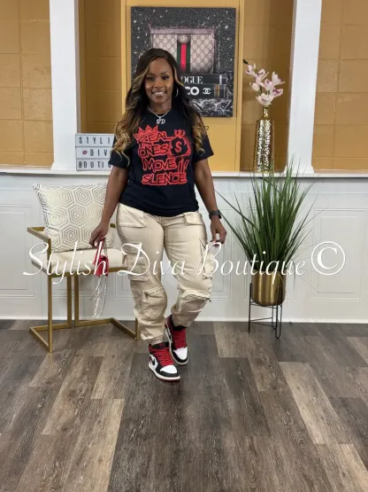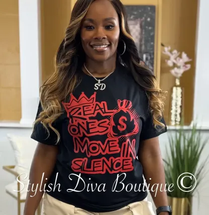 Real Ones Move In Silence T-Shirt (Black Shirt/Red Print)
