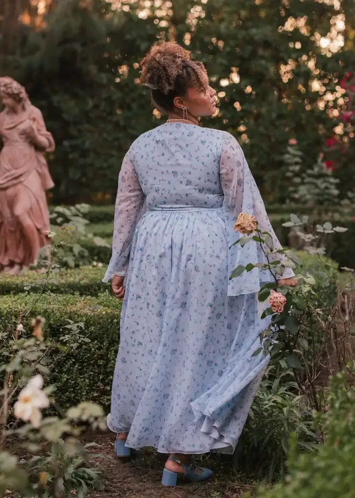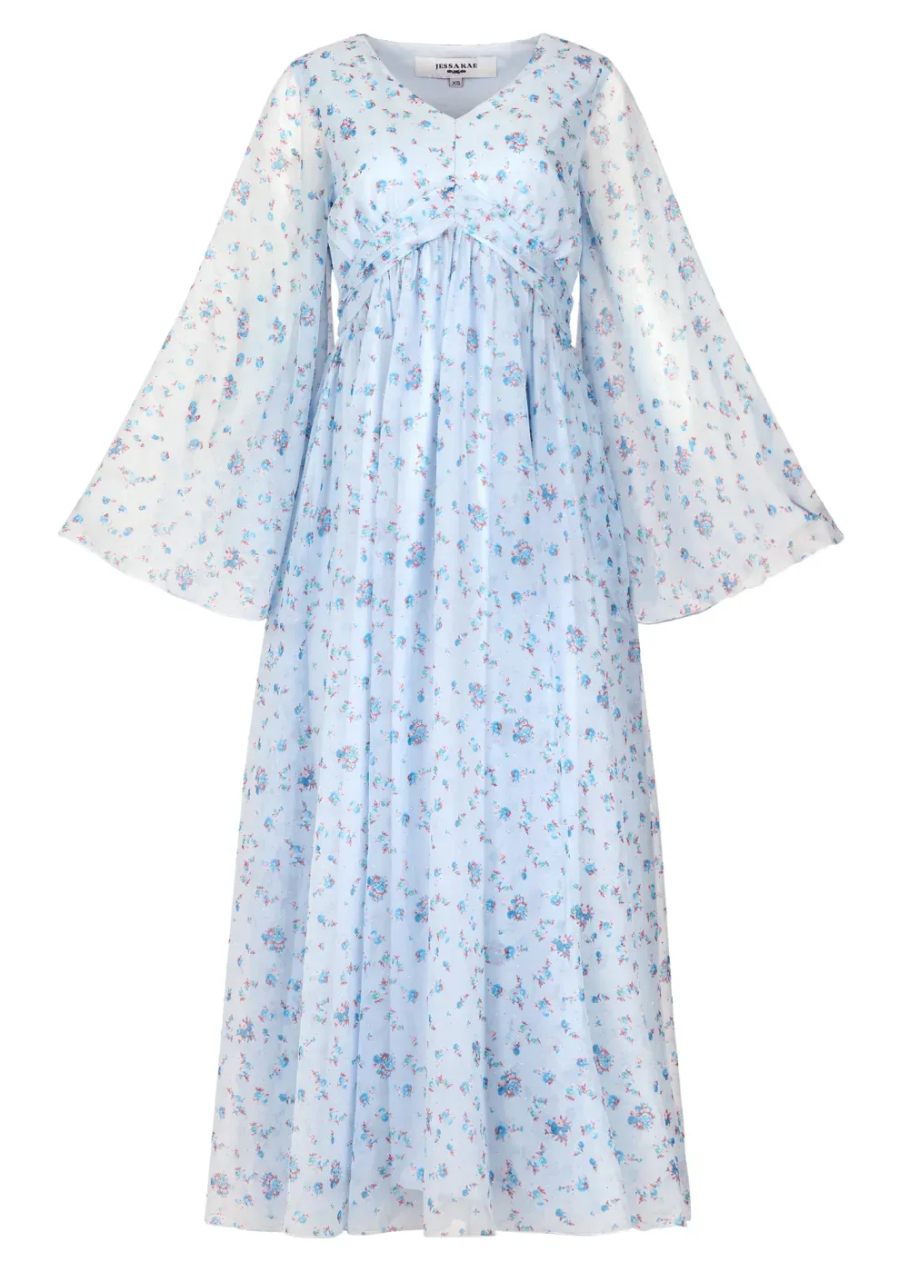 The Rosamund Dress captures the essence of effortless beauty with its delicate floral print and flowing design. Featuring a flattering empire waist and graceful long sleeves, it’s a timeless piece for special moments or everyday wear. Available in two stunning spring shades ― Blue Bliss and Pink Gloss ― it brings a touch of whimsy to any occasion.