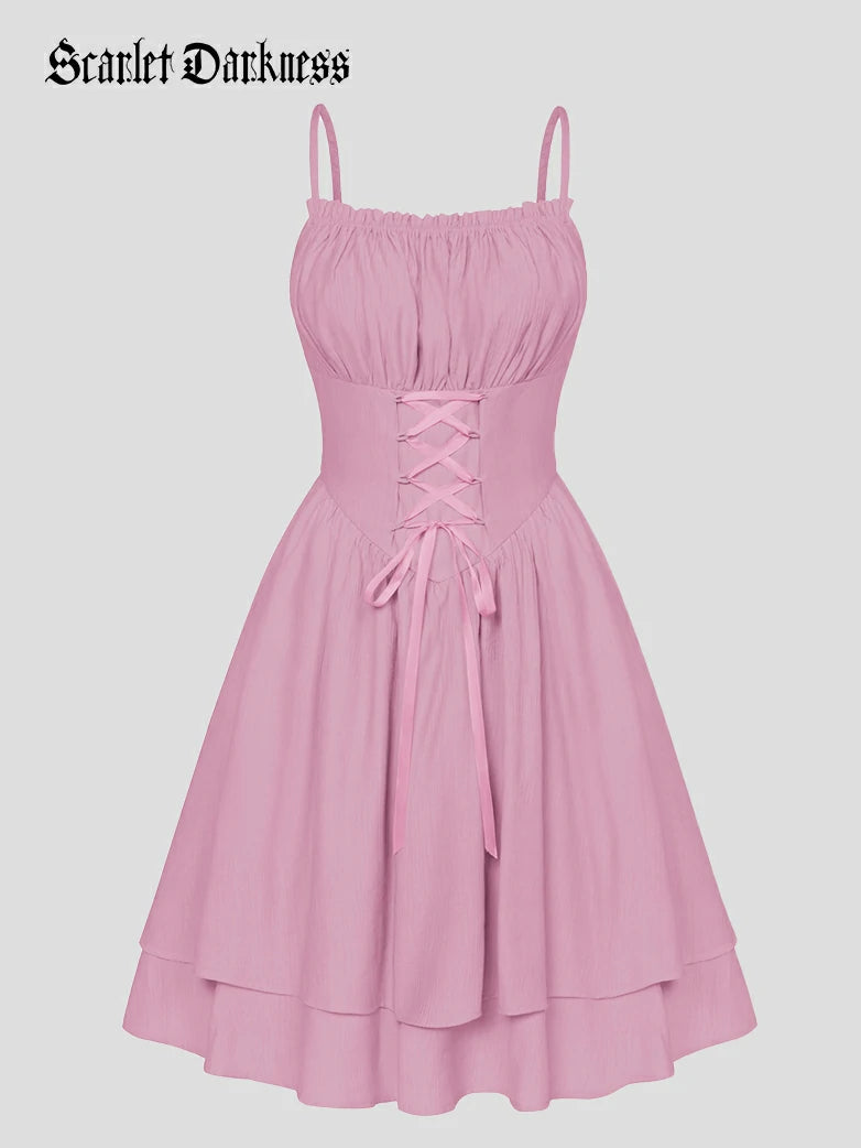 Scarlet Darkness Women Dual-Layer Hem Spaghetti Straps Square Neck Ballet Dress