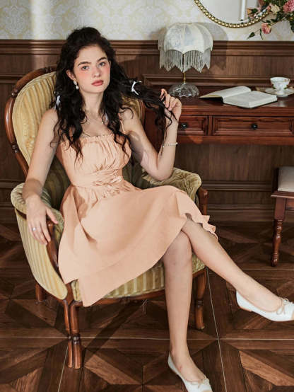 Women Dual-Layer Hem Spaghetti Straps Ballet Dress