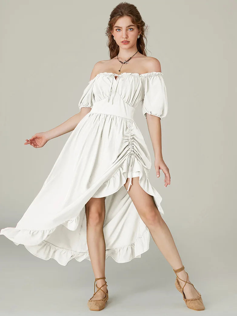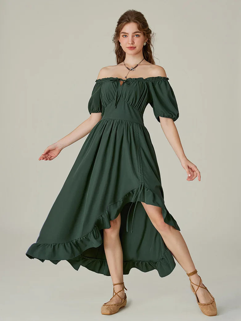 Scarlet Darkness Women Victorian Square Neck Drawstring Lace Maxi Dress