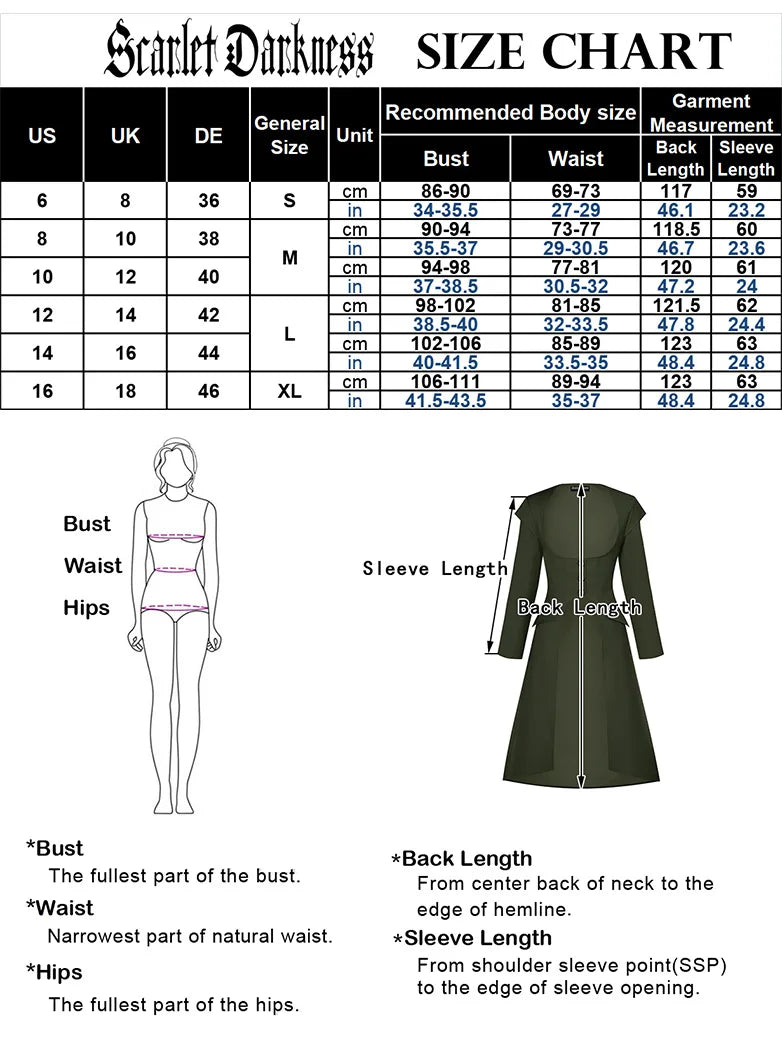 Get ready to rock the streets with our Scarlet Darkness Women Stempunk High-Low Trench Coat! Featuring a flattering under-bust design and a unique below knee high-low cut, this coat will add a touch of edgy style to any outfit. Plus, with its convenient button-up closure, you'll be both effortlessly chic and ready for any adventure. Upgrade your wardrobe today!