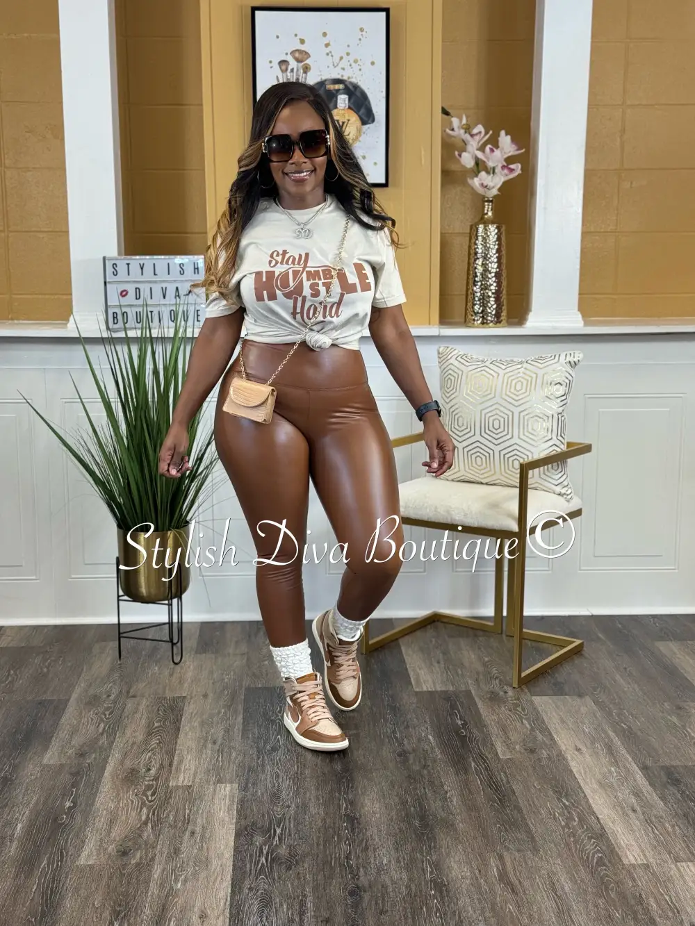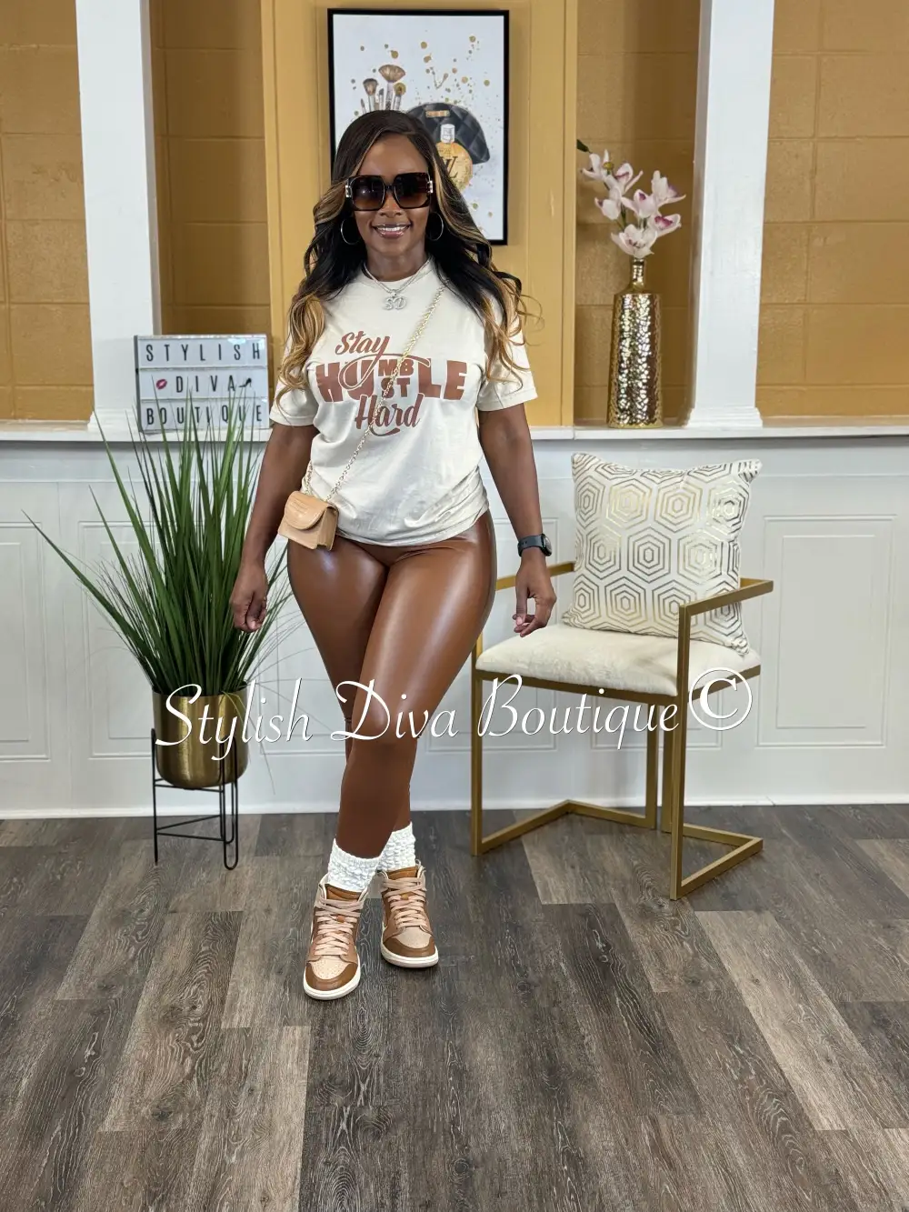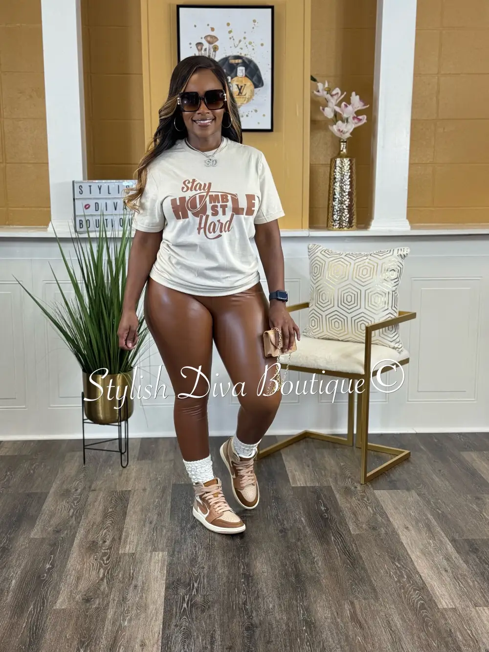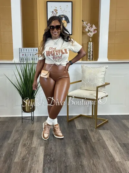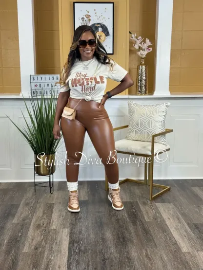 Stay Humble Hustle Hard T-Shirt (Sand Shirt/Brown Print)
