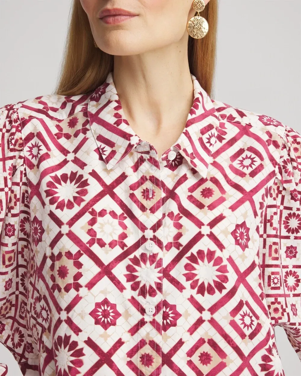 - Relaxed-fit; long dolman-sleeved, button-down collared shirt.