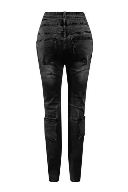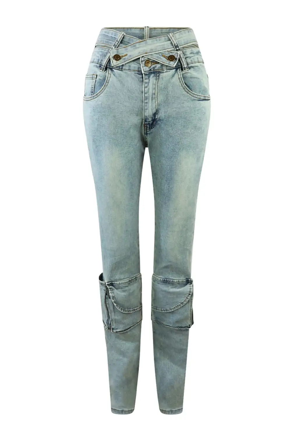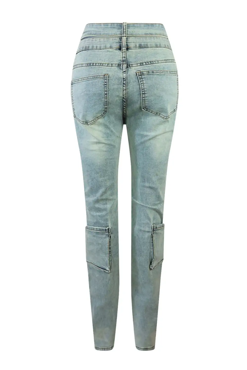 Vintage washed denim jeans featuring side cut out detail and cargo pockets