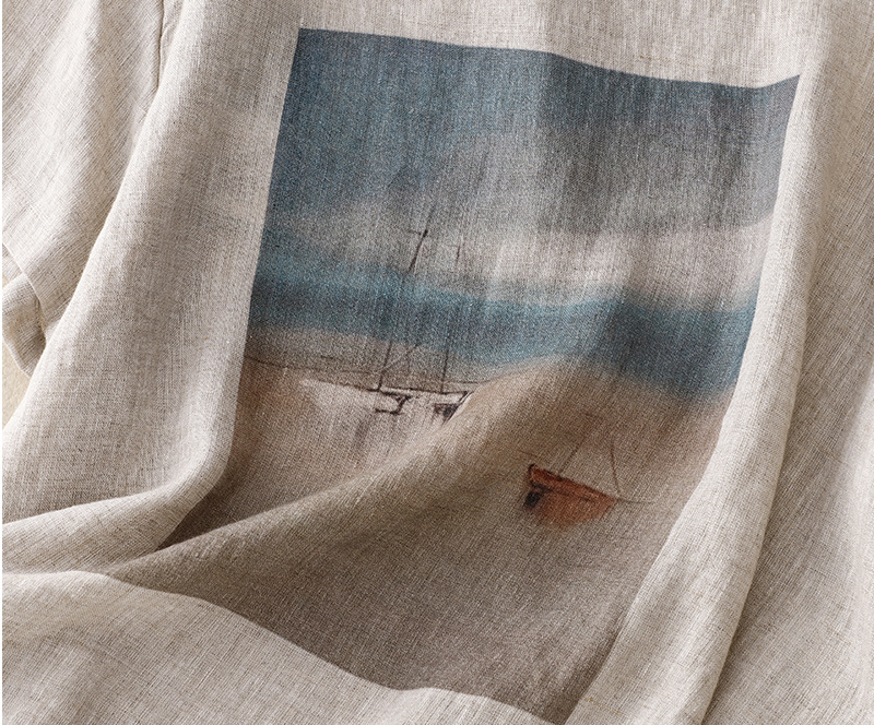 Vintage print cotton and linen T-shirt